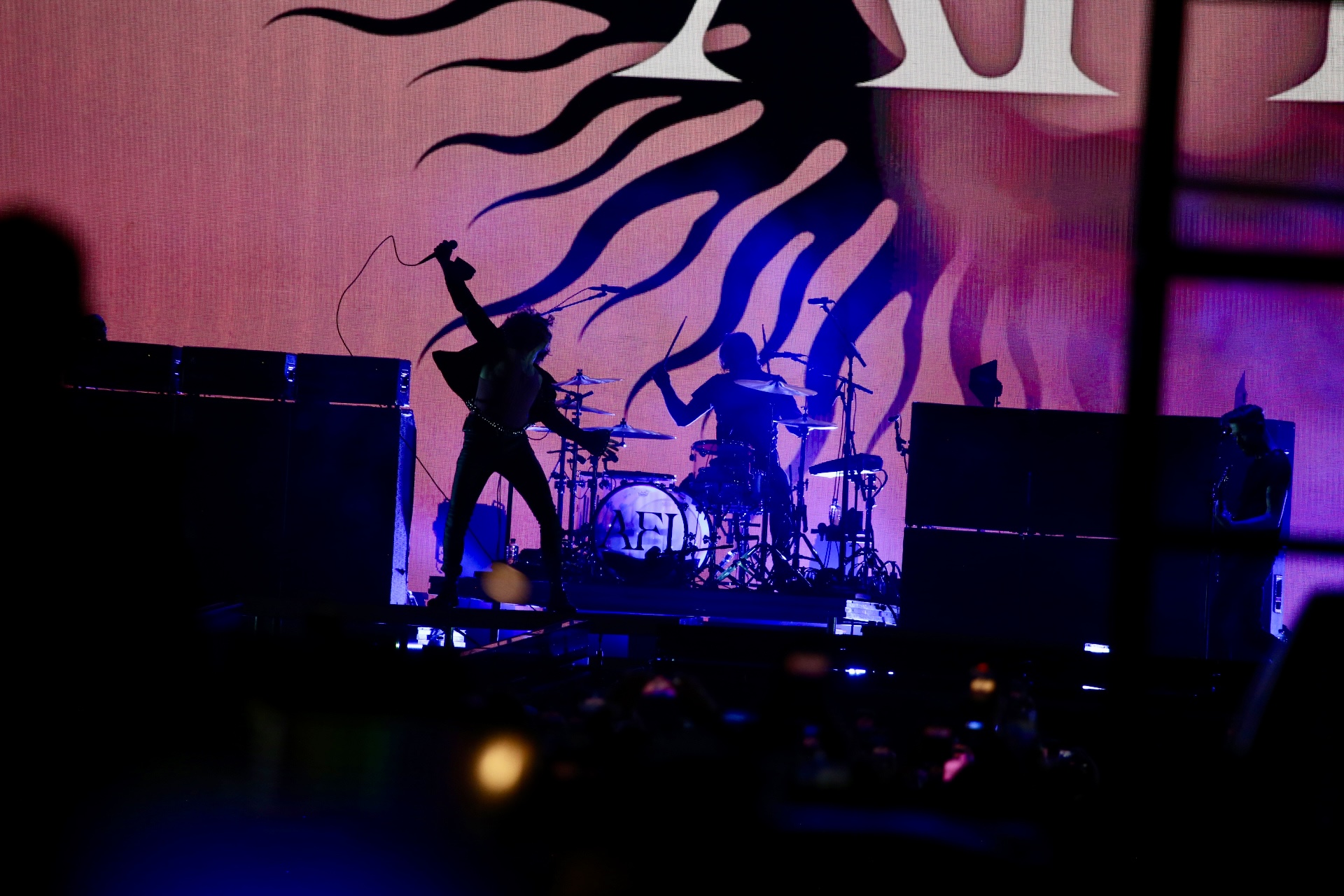 California rockers AFI lit up the main stage with a high-energy performance in front of a packed crowd. Frontman Davey Havok commanded the space, shifting between baritone weight and piercing punk screams as he worked every inch of the stage.