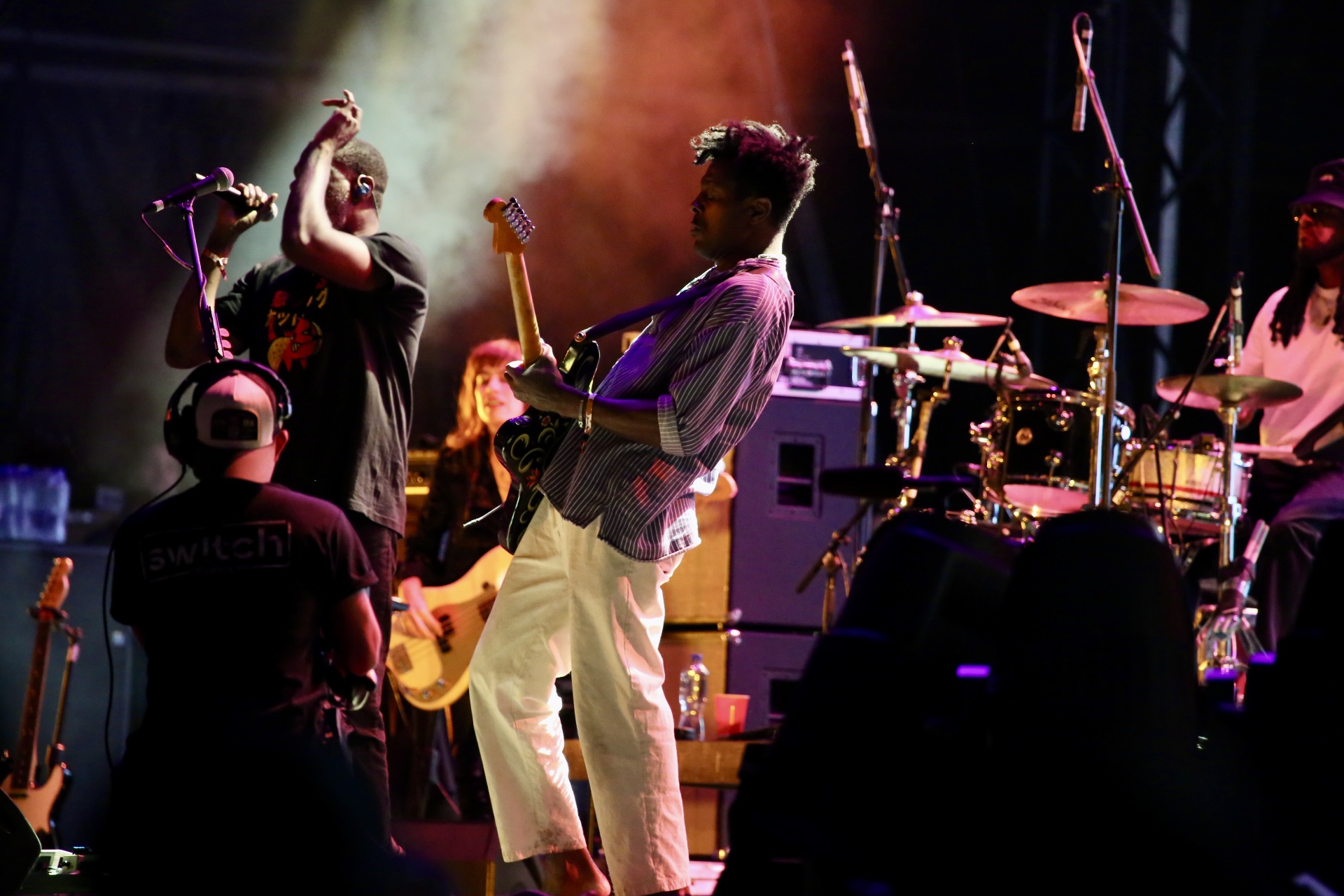 Brooklyn’s TV on the Radio — Tunde Adebimpe, Dave Sitek, Kyp Malone and Jaleel Bunton — continued their return to the stage with a focused, groove-driven set. The band’s current run of shows, which began in September 2024 after a five-year hiatus, has reaffirmed their place as one of indie rock’s most inventive acts.