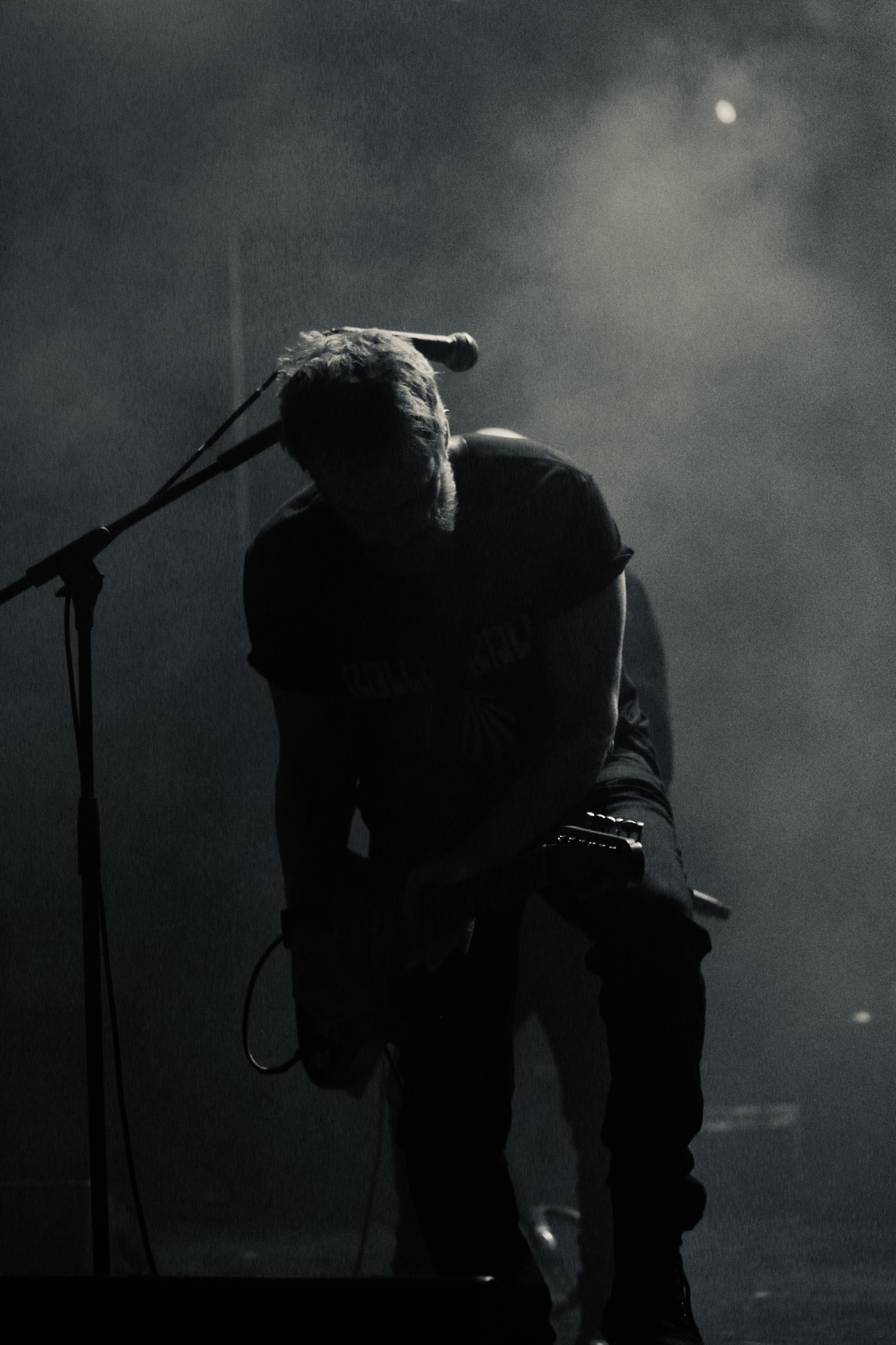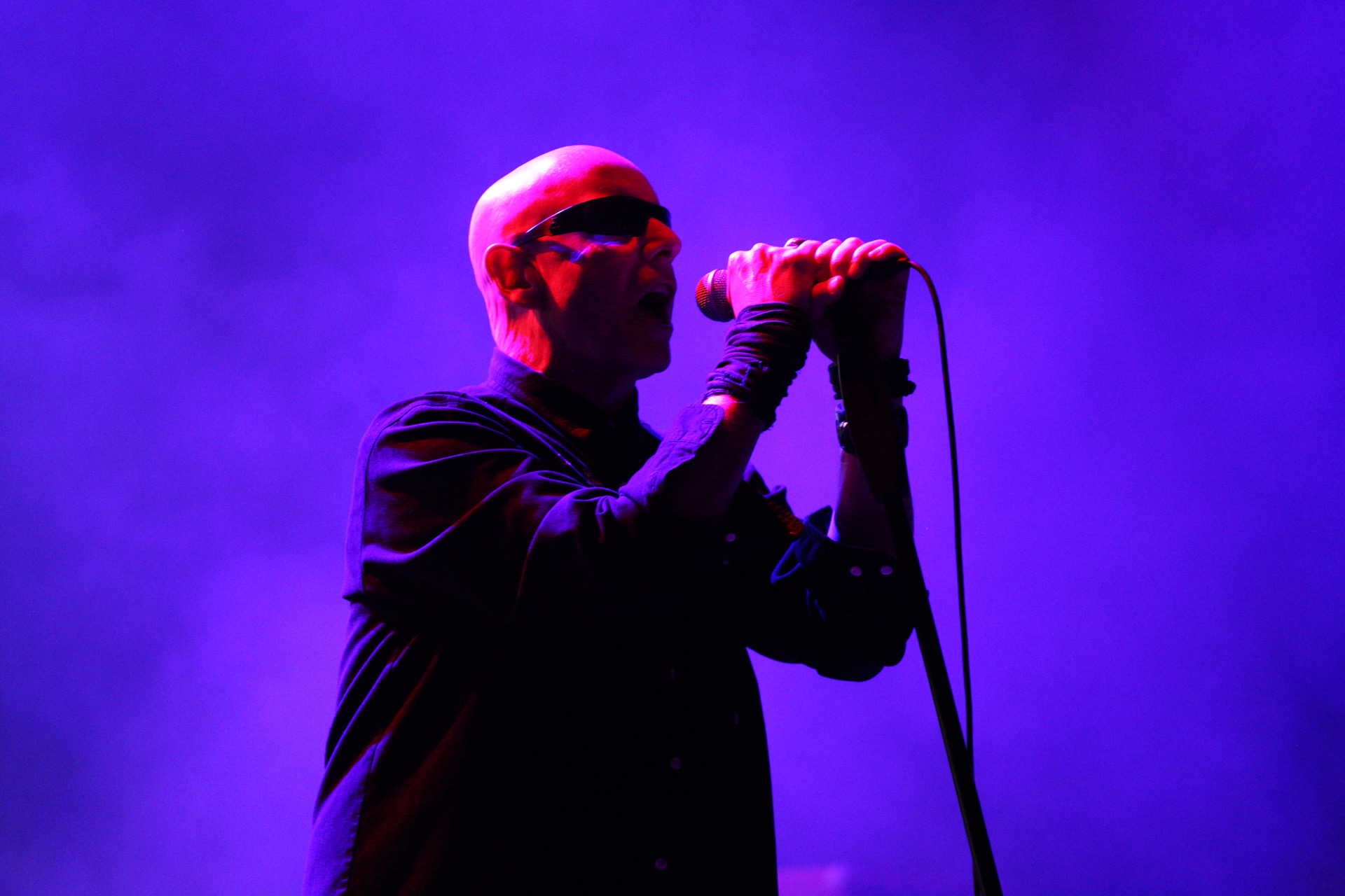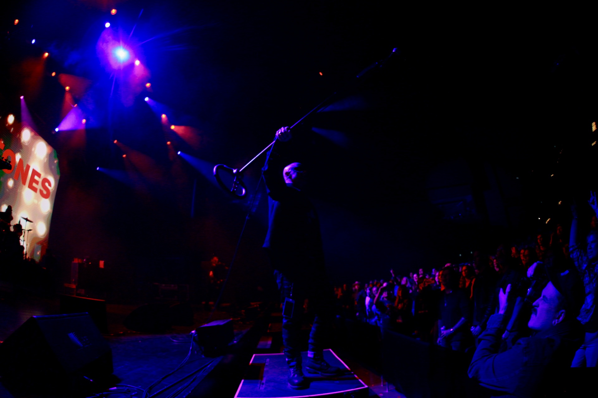 He began twirling his microphone in a giant circle over his head, letting it smash into the stage again and again, metal-on-wood cracks echoing through the theatre. When he reeled it in, the mic head was dangling sideways, hanging on by a few wires.