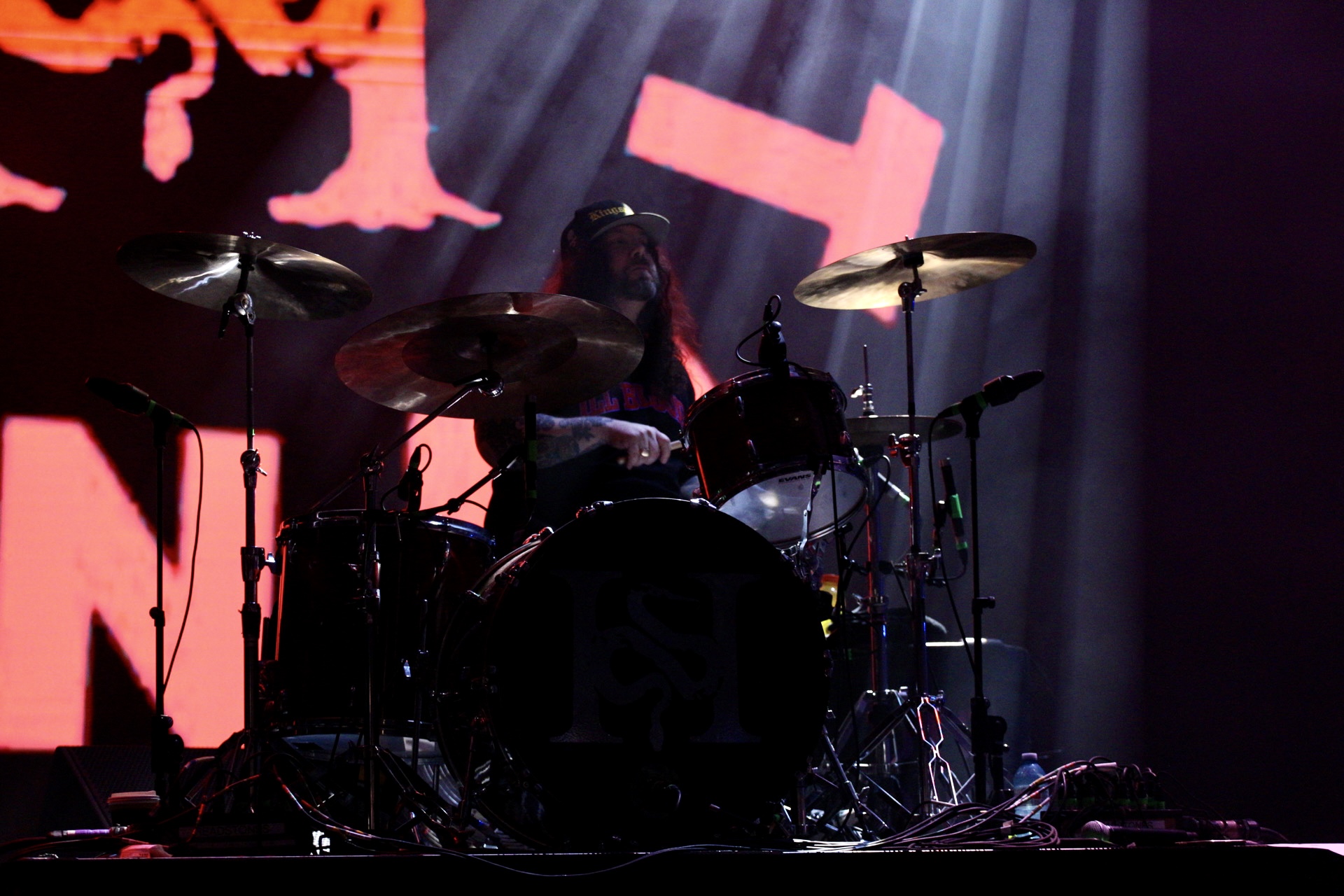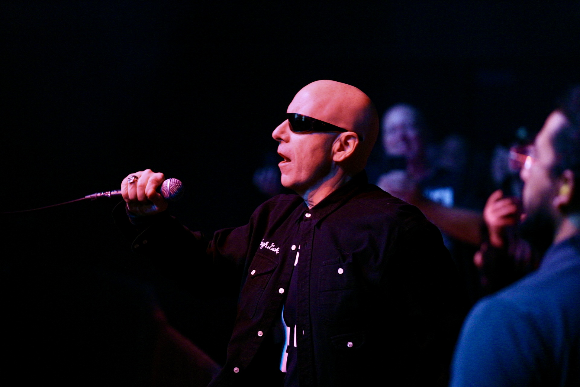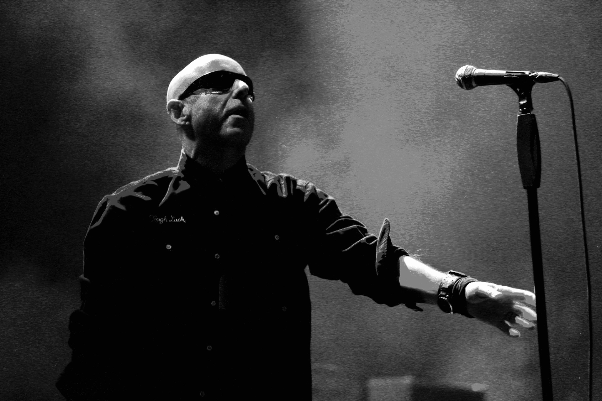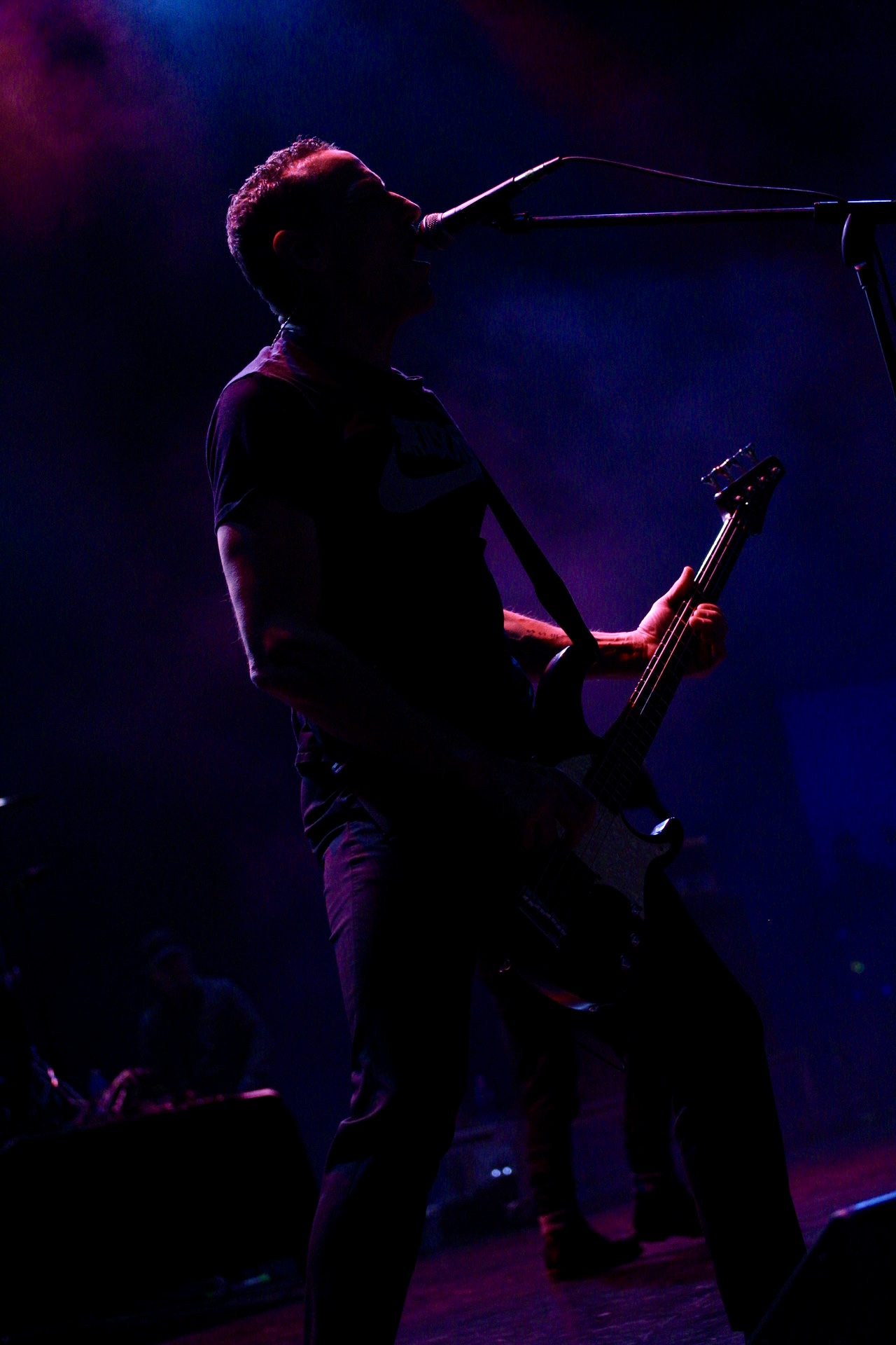 He began twirling his microphone in a giant circle over his head, letting it smash into the stage again and again, metal-on-wood cracks echoing through the theatre. When he reeled it in, the mic head was dangling sideways, hanging on by a few wires.