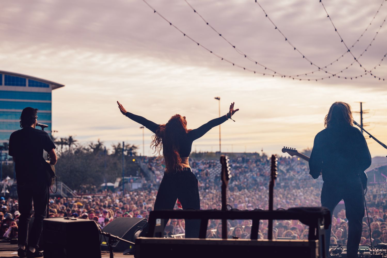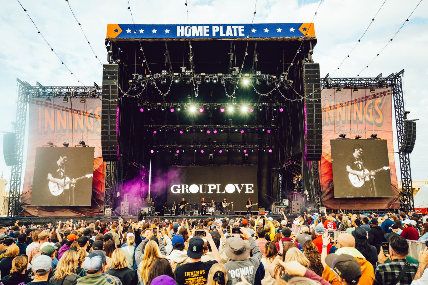 GROUPLOVE opened their 2026 with a burst of energy at the Innings Festival, walking onstage to Come Together and its iconic “come together, right now…” refrain under a bright Arizona afternoon sun.
