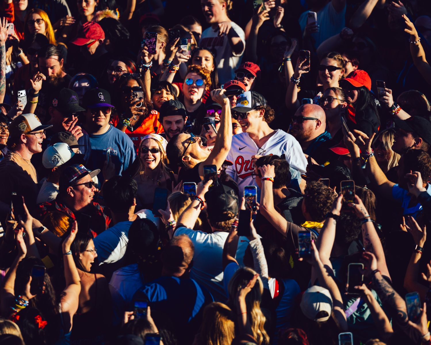 With microphone in hand, he moved deep into the audience, high-fiving and hugging fans along the way.